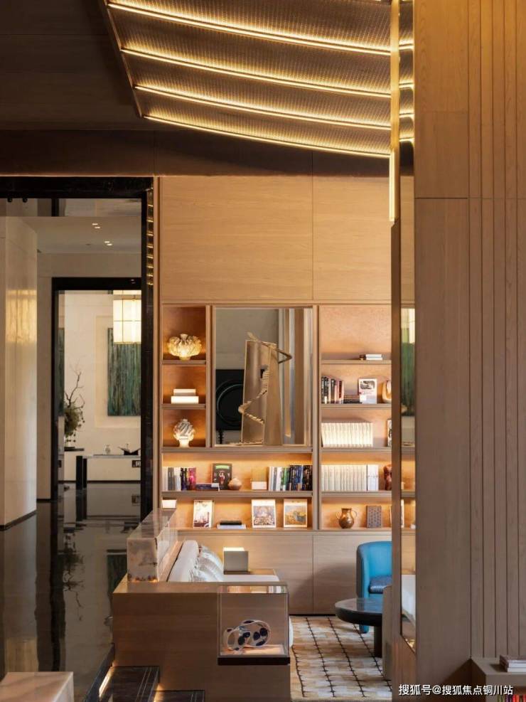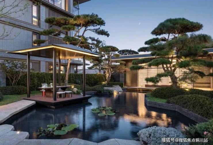 庭院的选材也极具讲究:太行山金景石堆叠成小山丘,岭南古桩铁冬青与中华原生乌桕树移栽而来,蕴含“聚财守业”的美好寓意。细节之处,经得起推敲,让人越看越有味道。