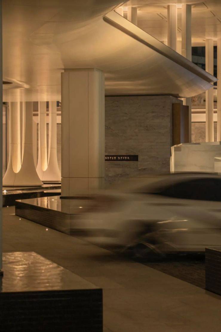 Nestled along the Yangtze River waterfront in Wuchang Bay, the project architecturally infuses water elements through layered spaces—from the riverside edge to aquatic courtyards, cascading waterfalls to mirror-like pools. With lighting artistry, rippling light patterns dance across ceilings and facades, transforming from glimmering ripples to torrential flows, then into profound stillness—each transition masterfully resonating with the distinctive character of its multi-dimensional setting.