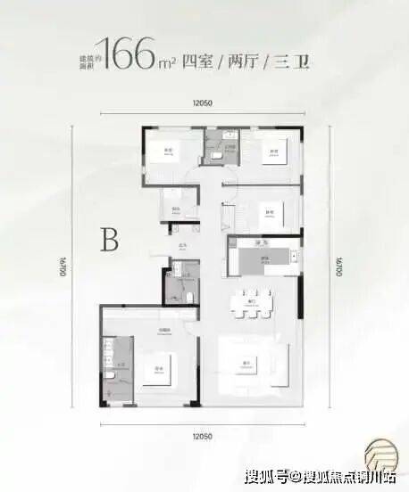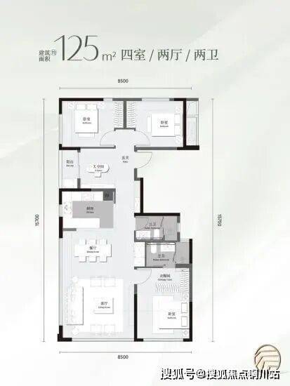 •建面约143m²中央环岛——客餐/厨/阳台一体化,阳光充沛的中央环岛,家庭生活与社交活动的欢聚主场