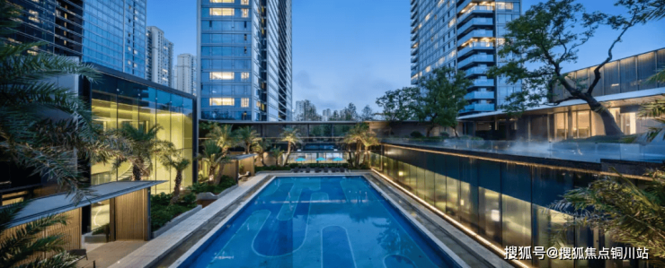 约470㎡的下沉式泳池,整合了独立休闲区、更衣室、卫生间等多维空间