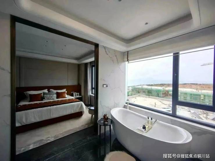 其中,建面约225㎡平墅级大平层样板间,采用现代高奢风格精装。户型方正、得房率高、南北通透、餐客一体化、270°瞰海视野、双套房设计,处处体现对细节的思考;