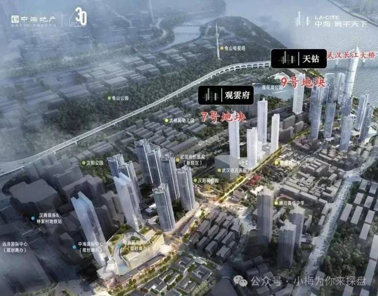 9号地块位于整个板块的北侧,一线看莲花湖公园,且龟山电视塔、长江、长江大桥等城市名片尽收眼底。