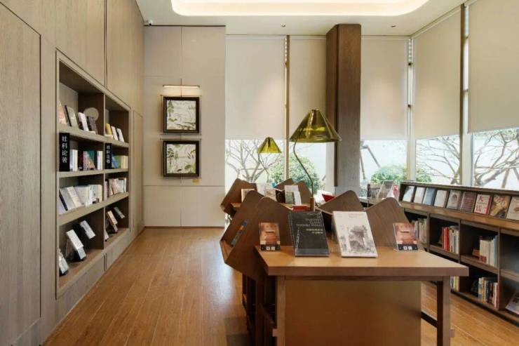 而在同一架空层内的另外一个空间单元,做了图书吧,这里将藏书1300多册,形成一个阅读区。