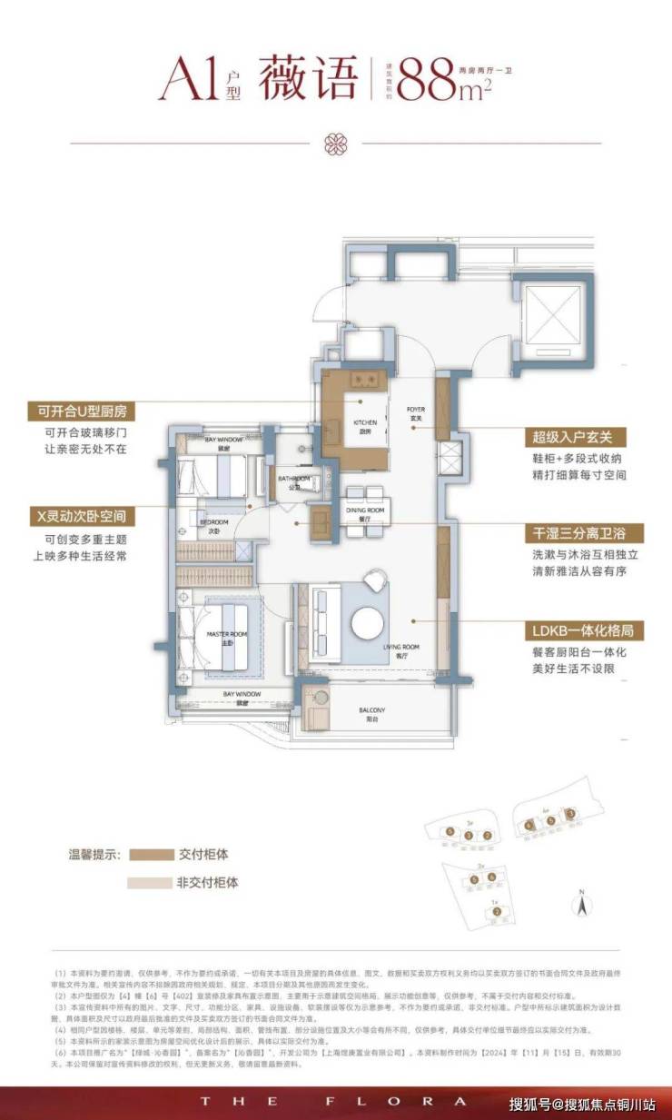 装标和建面约88㎡的户型总体是一致的,厨房多了一个灶蒸烤一体机。