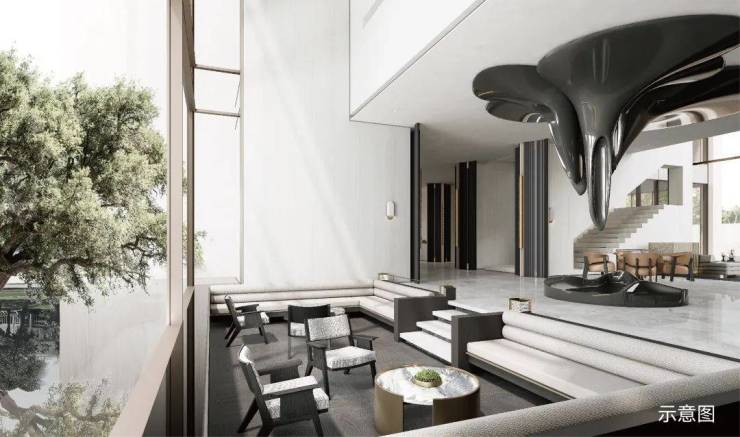 无会所,不豪宅。中海狮山云起的这个会客厅别具一格。汲取苏州西博的建筑美学灵感,并大面积运用了昂贵的石材。