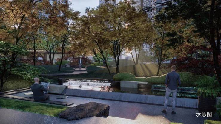 叠水、太湖石,甚至是层次丰富的景观植被等细节的元素和材质,未来在这里都是业主日常所见。中国人骨子里有着对传统文化的喜爱和执着,一山一水,一花草一树木,高低咸宜,错落有致。推窗见景,心境也不一样。