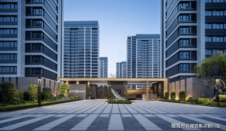 社区大门以极简线条勾勒高级感,金属收边与石材拼接的细节处理,在低调中显露工艺精度。