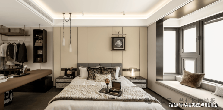 约40㎡的豪华主卧套房:足有一套公寓大小的豪华主卧大套房,拥有L型全画幅飘窗+步入式衣帽间+双台盆卫浴,仪式感与实用性兼具。