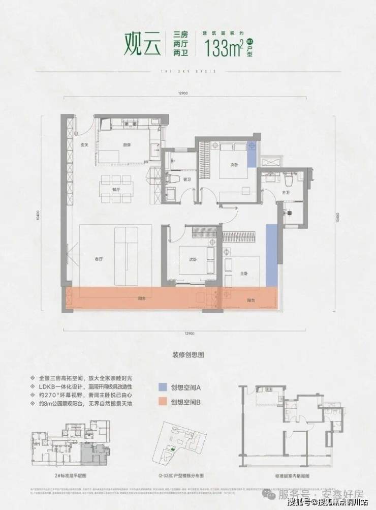 二期得房率提升至85~97%,百变空间;增加转角窗设计,拥有270°观景视野,采光效果更佳;主卧阳台优化,卫生间飘窗全优化,实际利用率更高;S 墙设计,冰箱嵌入更美观;采用日立、博世、方太等国内外一线精工品牌,筑矜贵生活品质。