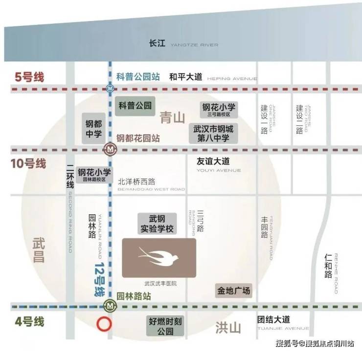 项目距离钢花小学约800米,已官宣与钢花小学开展校企合作。去年武汉外初录取生源中,钢花小学排名青山区第一。