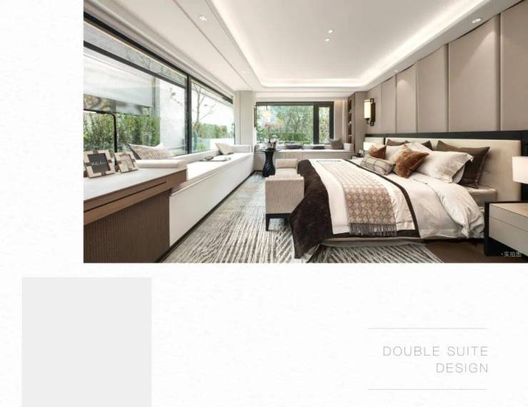 主卧套房自成一方天地,南向配置270°转角飘窗,延展为休闲憩所,静享阅读、冥想时光,拓展生活意趣。充裕的步入式衣帽间,容纳四季风尚美学。奢适独立卫浴空间,配备大容量收纳柜、智能美妆柜、舒享浴缸等,沉浸于此,疗愈身心,重获平衡。(转角飘窗仅E户型)