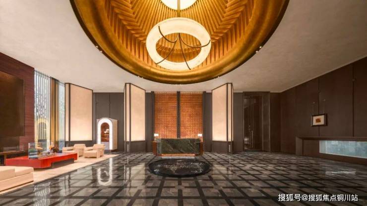 归家大堂的穹顶承袭皇家宫殿藻井形制,采用非遗“泥金彩漆”工艺,手工逐寸贴金;中央圆环吊灯由整块白雪公主玉石原石雕刻而成。