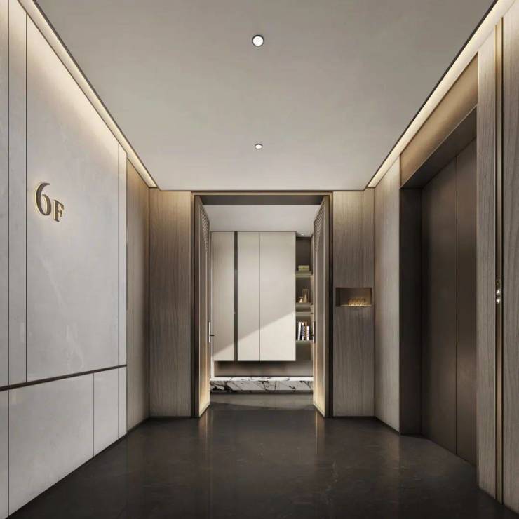 zui容易被忽视的地下车库,「中信泰富玖阅」配置了升级后的星空顶车库。精装入户大堂+配备空调的高端精装电梯厅,也代表了迎客的排面。