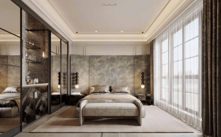 衣帽间、梳妆台、2米大床甚至是浴缸,都可以轻松容纳,再加上超大落地窗的设计,居住舒适度直接拉满!