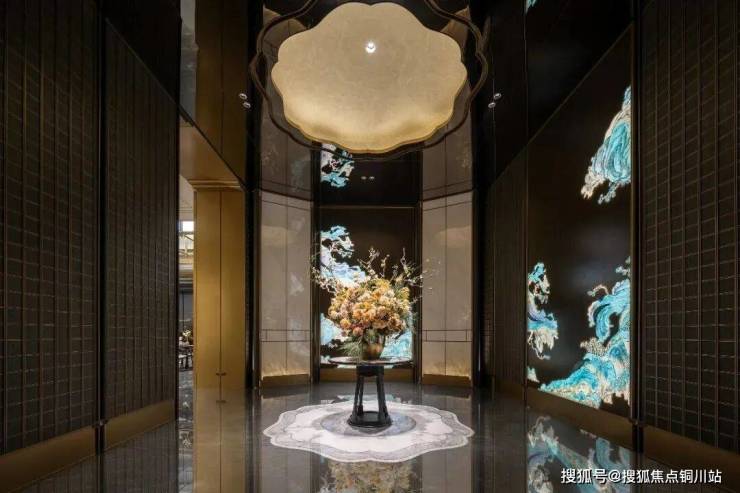 建发室内设计之美,独具匠心。非采用国家级非物质文化遗产——掐丝珐琅的宫廷技艺,以手工精细复刻《千里江山图》这一艺术瑰宝,体现了对细节的极致雕琢与尊崇。尊贵材质不仅应用于大门,售楼处与单元入户大堂也精心布置了同款掐丝珐琅艺术背景墙,实现了传统艺术与现代设计的无缝对接,营造出非凡的视觉盛宴。