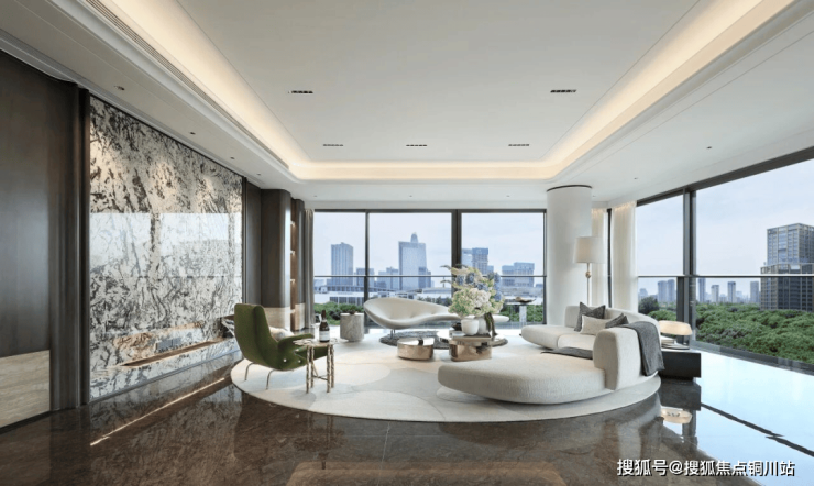 270°L型阳台的IMAX视野,是“独处与社交”的双重载体。创新的广角会客厅搭配270°L型全落地窗景阳台,将东部新城天际线与甬新河景“框”进室内。阳台进深约1.8米,足够摆放休闲茶座与绿植,凭栏远眺河景与城市繁华,享受“私享大片”的视觉体验。