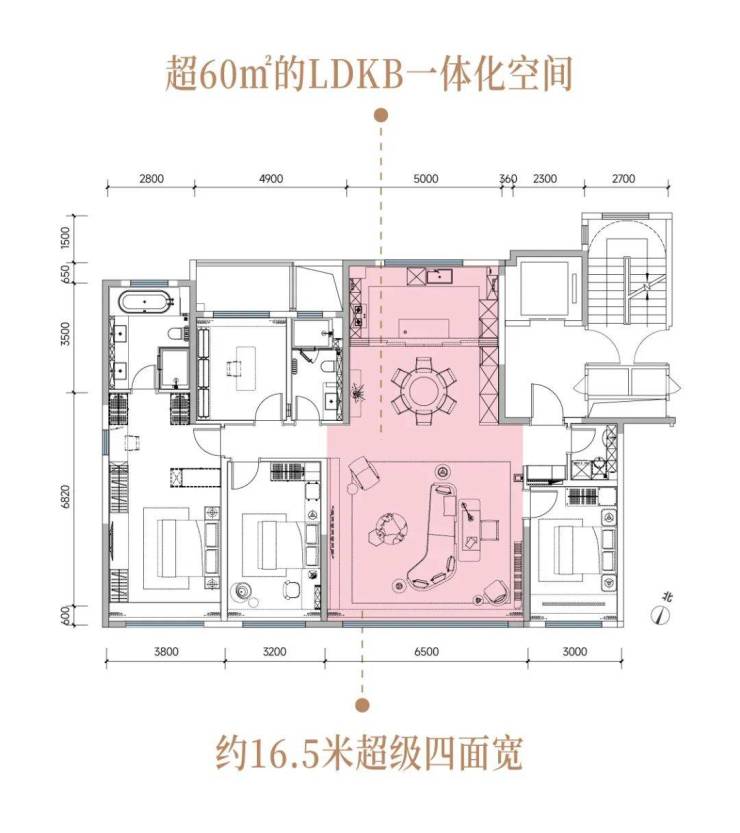 建面约190㎡环幕四居,约16.5米墅级四面宽,媲美独栋的采光格局;超60㎡LDKB一体化空间,宴客起居皆从容;独立家政间+星级主卧套房,演绎崂山生活范本。
