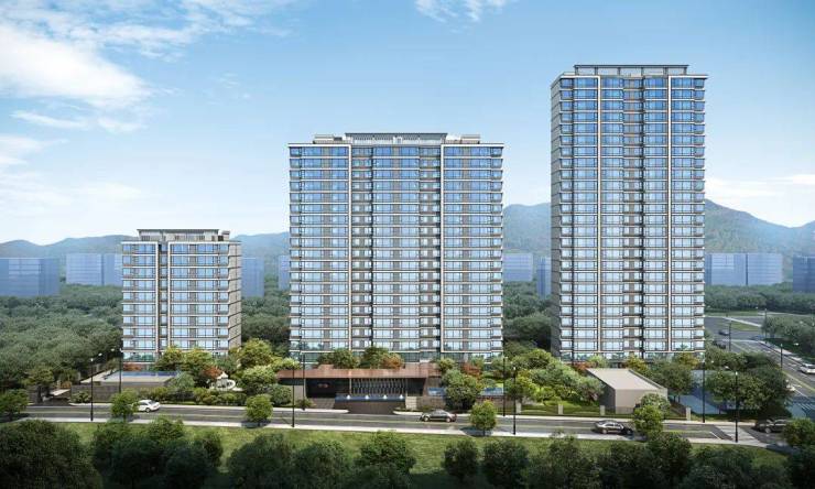 就外立面来看,灰色金属线条搭配米色一体板,南向阳台全玻璃近落地窗设计,虽然造价成本高昂,但质感大大提升。
