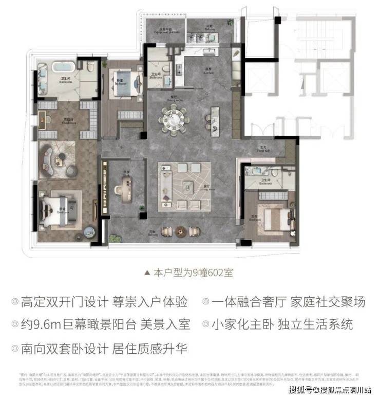 涵盖建面约145-248㎡户型,实现引景框景、270°景观面、少柱少墙大公区,主卧“大家化”、多阳台、多套房的户型设计跨越。