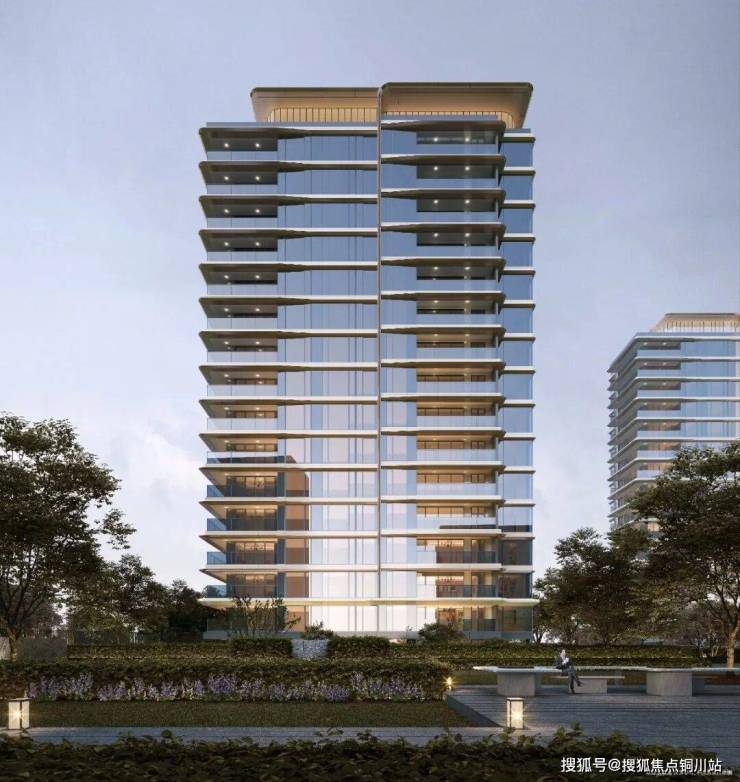 立面公建化立面抛弃了传统的三段式做法,充分融合在地文化立面语言以“向水而生”理念,采用了全通透水晶立面+腰间水波纹铝线条,打造出更符合东方美学的立面和极具漂浮感的层叠挑檐屋顶,实现如春云浮空般的优雅意境。