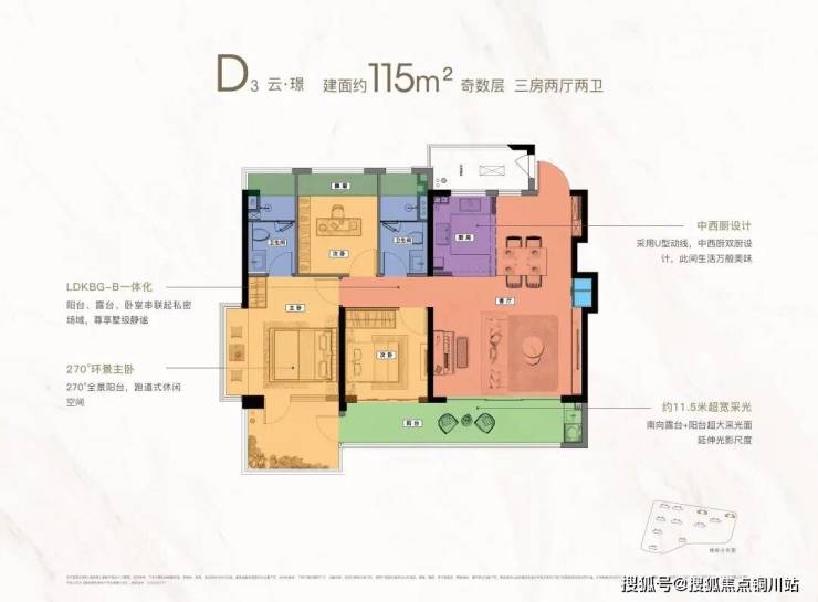 璟上即将上市的二期全新升级产品天华,主力户型为建面约99㎡和115㎡三房两卫,户户带有约6m挑高露台,加上超大面积的飘窗,得房率超100%,性价比非常高!