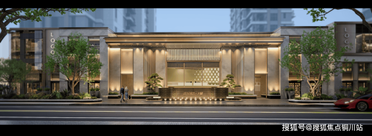 建筑立面以约60%窗墙比奠定通透基调,搭配玫瑰金铝板斜切设计,于简约中勾勒光影的细腻层次。整体风格大气藏奢,历久弥新,展现极具张力的视觉表现。