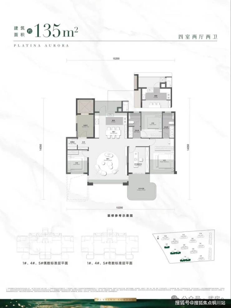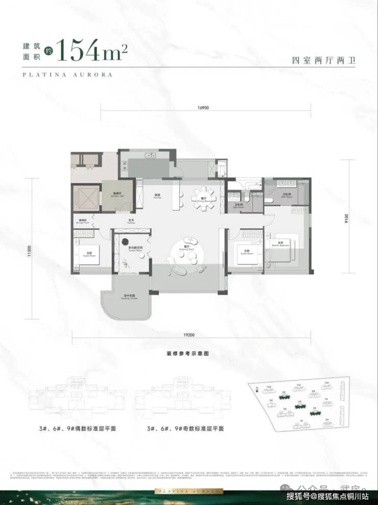 户型面积段为 94-155㎡,包含 94、98、108、123、135、154㎡六种户型规格,其中123-155㎡户型带有空中花园,户户配置专属创意彩蛋空间。