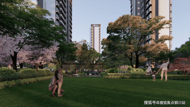 社区内部通过礼仪归家轴、公园轴、视线通廊等多条动线,串联起不同主题的景观场域,营造出“一园一主题,一步一场景”的沉浸式漫步体验。