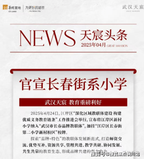 然后,武汉天宸官宣文件中显示将天宸对口的江岸区新村小学纳入“武汉市长春品牌教联体”,加挂“江岸区长春街第二小学新村校区”校牌。说白了,就是把武汉天宸项目附近的新村小学改成了长春街二小新村校区,但周边对口小区的圈层、学校硬件基本没有太大变化,换汤不换药。