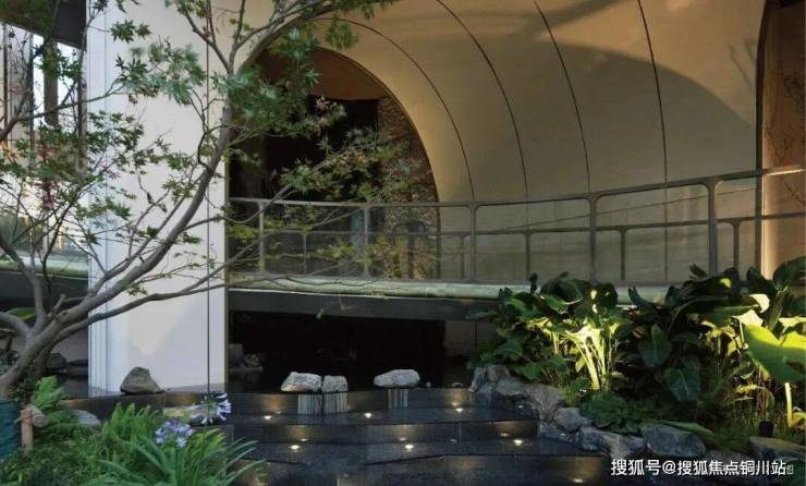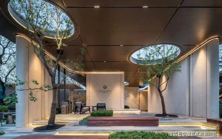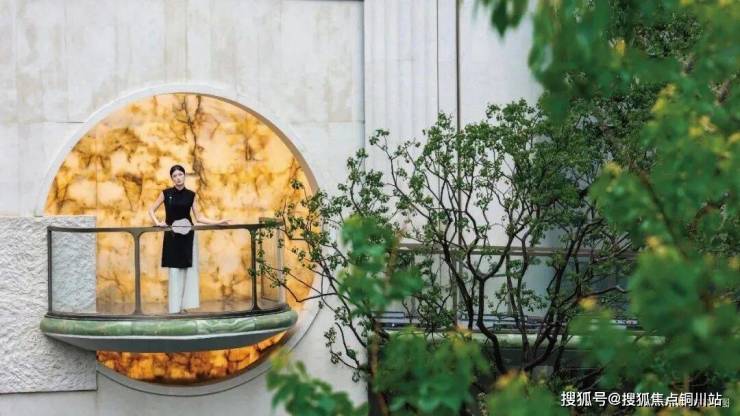 院内景墙撷取苏州玉盘的温润形制,辅以当代水景工艺演绎"大珠小珠落玉盘"的诗境。