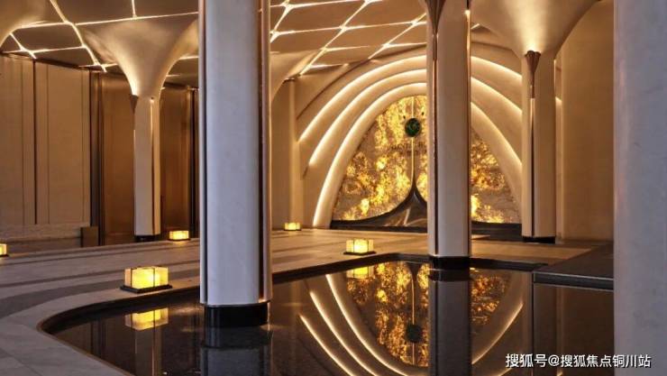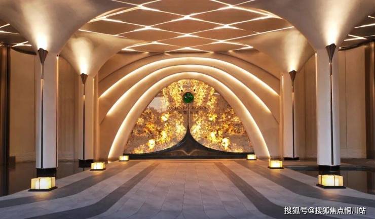 入口大堂八根玉树门柱内置射灯,确保光线均匀向上蔓延。主入口处的照明精心设计,通过两侧对称的灯光序列,营造出庄严的仪式感。射灯预埋镜面水景中,使柱廊倒影与实体建筑虚实相生。