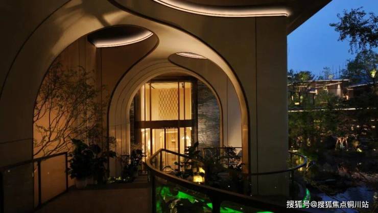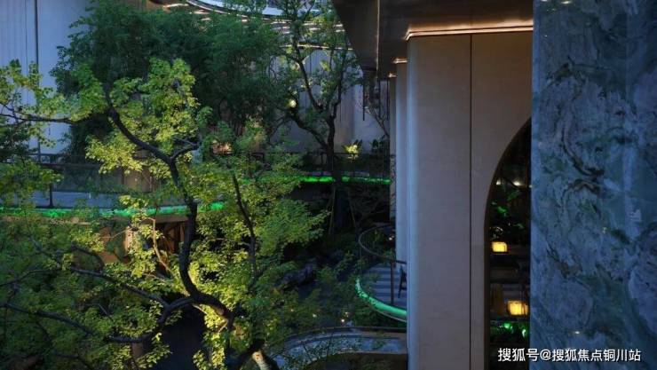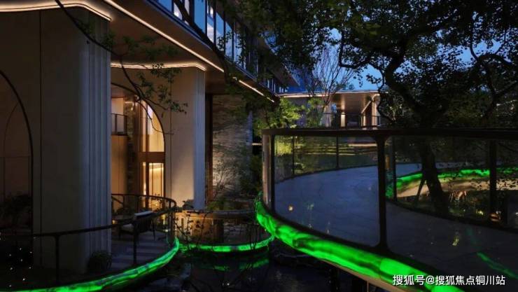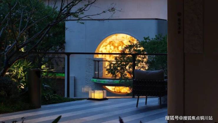 庭院的廊道自然光与人工光透过孔洞交错形成流动光韵。青玉景观桥底部安装无缝线性投光灯,使桥体宛如悬浮玉带,倒映水中形成完整光环,再现太湖石"瘦皱漏透"的审美精髓。