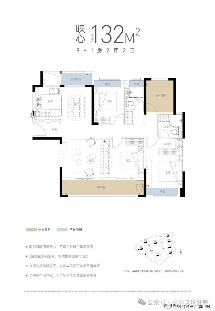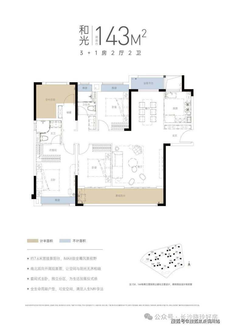 ·建面约132-143㎡3+1房——南北通透布局,南向景观阳台约7.4m(建面约132㎡户型)、约7.65m(建面约143㎡户型),即满足从容会客,亦承载家庭逸趣,约3.8㎡独立玄关入户,扩容收纳空间,U型厨房设计,操作动线流畅,将舒适度发挥到极致