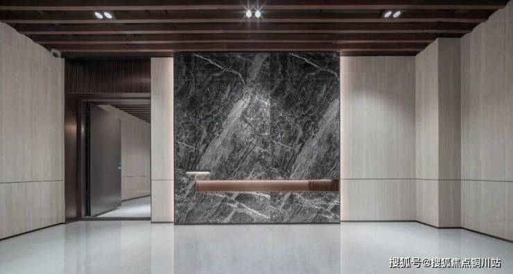 地下光厅是地下归家动线上最后也是相当重要的一环,暖灰与浅灰的主色系将高级感拿捏得恰到好处,大面岩板、大尺度仿石砖与金属线条的高阶材质与细节打磨,呈现星级酒店的奢华质感。