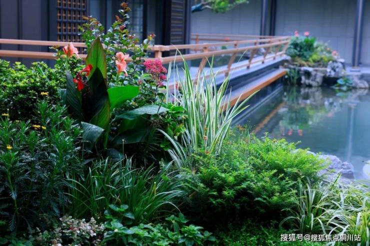 主题乔木:中央水庭两岸点缀垂丝海棠与红枫,春赏繁花,秋观红叶,延续苏州园林"折游阳台"的空间趣味。