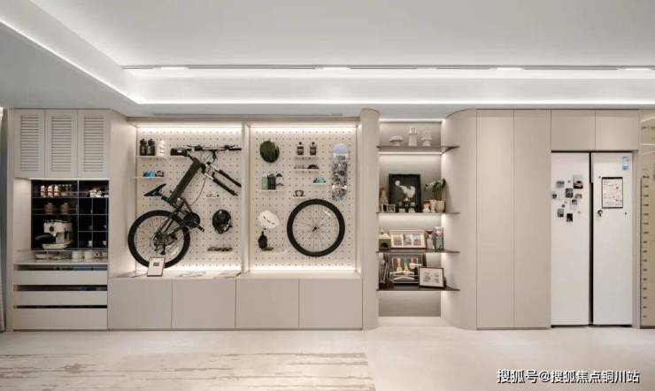 如玄关处打造了一整面磁吸墙,它可以是全国博物馆“文创冰箱贴”的展示墙,也可以记录下家中孩子的成长轨迹,无论如何DIY,都会让“家文化”更生动丰富;