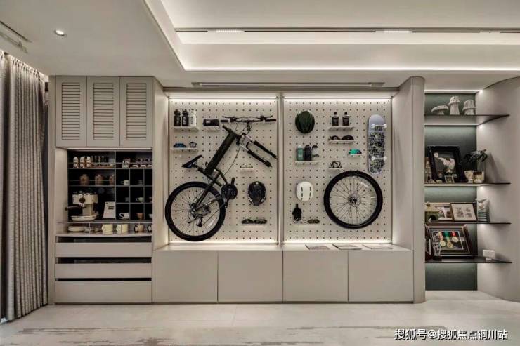 比如多功能的玄关柜,外套雨具、折叠式婴儿车、行李箱都安排了“专属空间”,鞋柜的空间也足够大,甚至还做了专门的换季鞋子收纳柜。