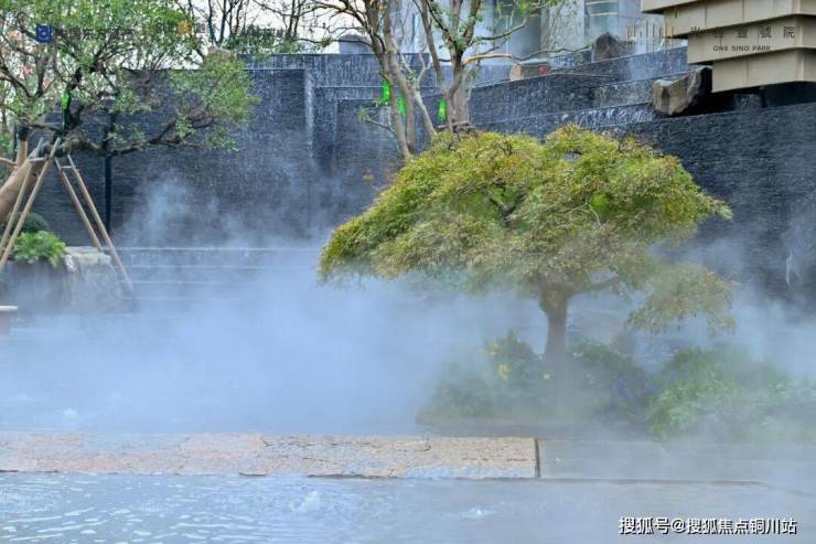 迎面而来的是一个巨大的镜面水池,以及13个小瀑布组成的瀑布群,给人“山涧飞瀑”的感觉,这里是园林的第一个核心景观。瀑布水声飞溅,水景搭配水雾,既起到降温、增湿的作用,在视觉、听觉上也是一种享受。