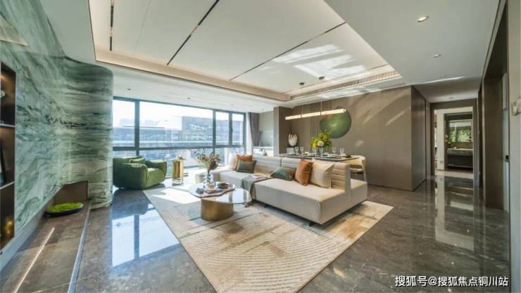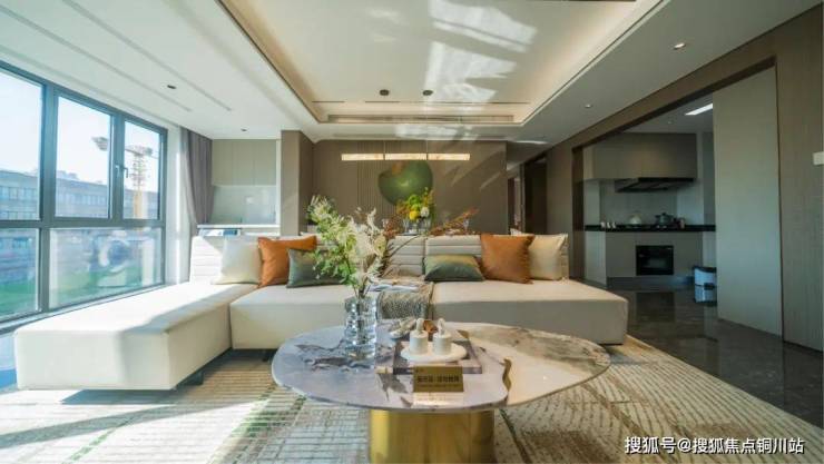 LDKG一体化设计+全景落地窗,城市天际线成为客厅背景墙;