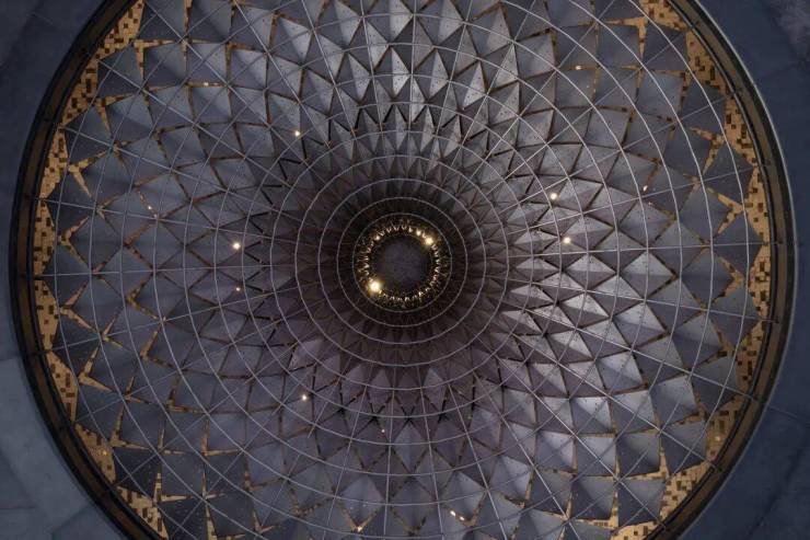 Stepping into the drop-off courtyard at the entrance, one is first struck by the extra-long landscape wall stretching approximately 250 meters, along with the ceremonial entrance hall that spans 42 meters in width and stands 4.8 meters tall.