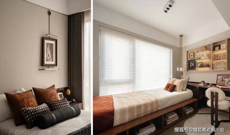 南向次卧套房设计,增加收纳或洗漱功能,有效实现家人的私密感。这里可以是父母房,让长辈安享静谧时光;也可打造为“成长活力舱”,满足孩子逐渐形成的自由需求。