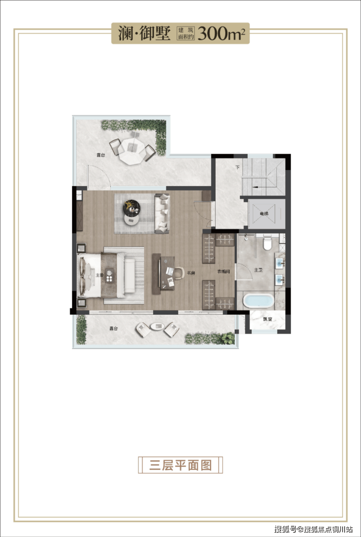 南向阳台纳园林远岫,北向露台揽星河入梦。