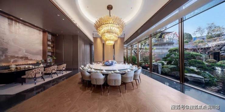 近1500平的下沉式会所,配置恒温泳池、健身房、18人位私宴厅、格调行政酒廊,而这样的空间围绕整个下沉式庭院排布,全景玻璃窗让景观与空间无界交融。