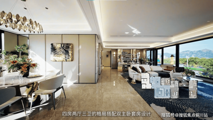 四房两厅三卫的格局搭配双主卧套房设计,实现家庭成员的居住平权与私密尊享。