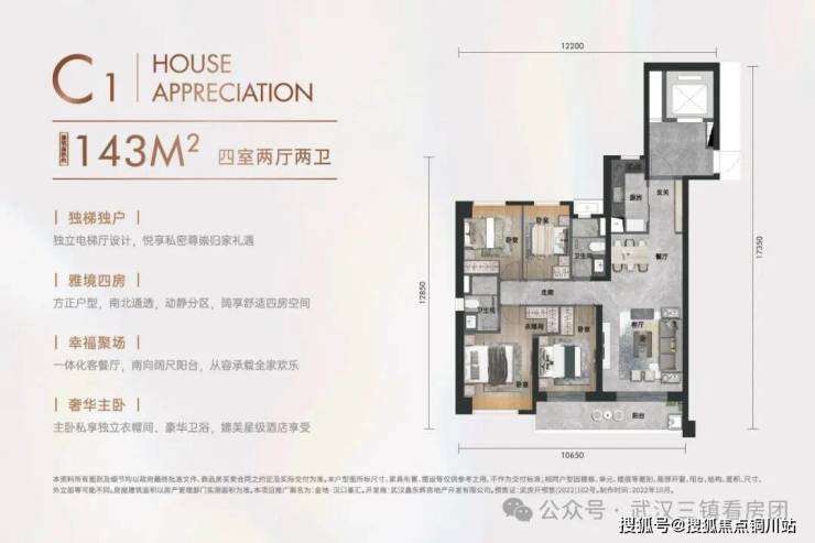 🌟 【C1户型建面约143㎡四室两厅两卫】
