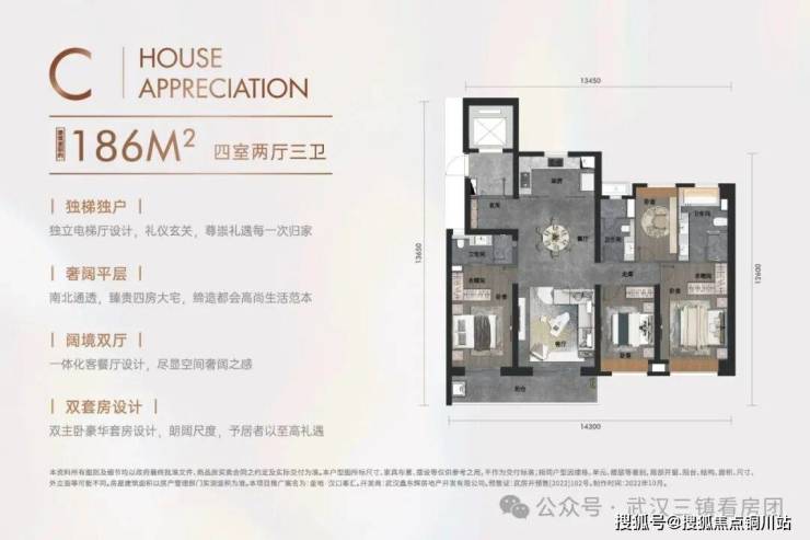 🌟 【C户型建面约186㎡四室两厅三卫】