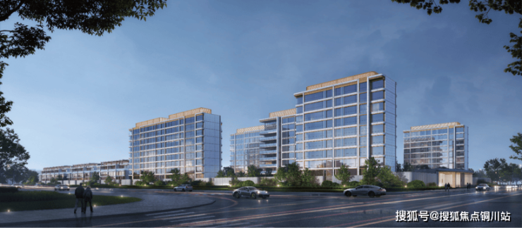 建筑外立面以大面积玻璃为主,香槟金线条勾勒,叠墅顶部有独特设计,洋房部分顶层为复式设计。