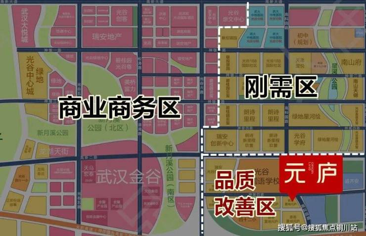 而住宅部分,以光谷外国语学校为界。外校北面实际上是整个光谷中心城最早发展的地方,属于传统的刚需区。