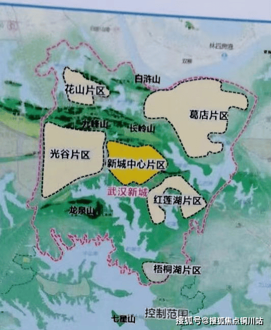 从网传的武汉新城规划图上可以看出,范围大致包括光谷片区、花山片区、新城中心片区、葛店片区、红莲湖片区、梧桐湖片区等。