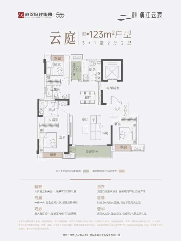品牌实力:由武汉城建集团倾力打造,作为国企 500 强和中国房地产百强企业第 32 位,武汉城建集团拥有丰富的开发经验和强大的资金实力,其项目品质和交付安全性都有保障,让购房者更加安心。